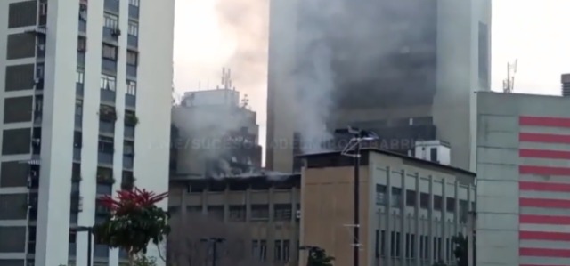 Se incendió edificio adyacente a la plaza del BCV en Caracas (Video)