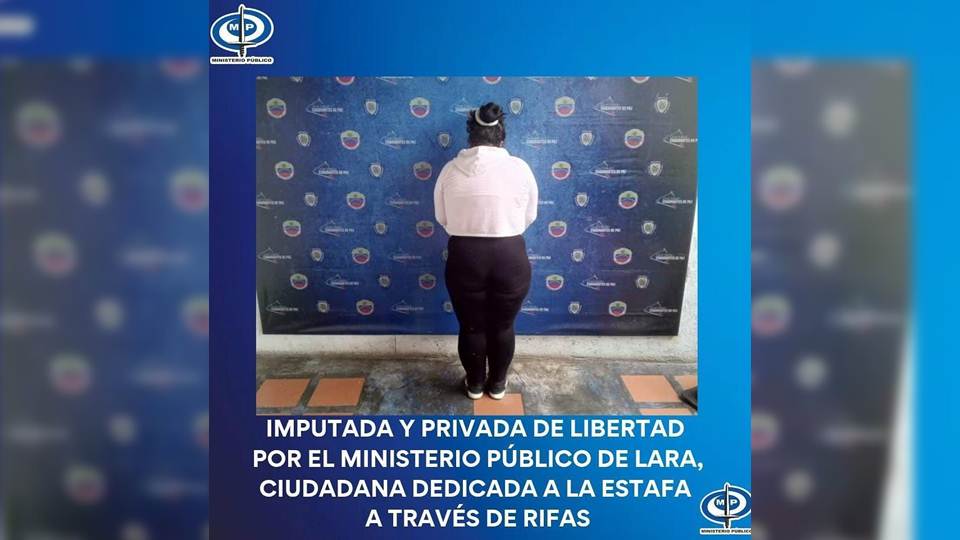 Fiscal General Saab informó que fue privada de libertad e imputada por el MP ciudadana dedicada a la estafa a través de rifas