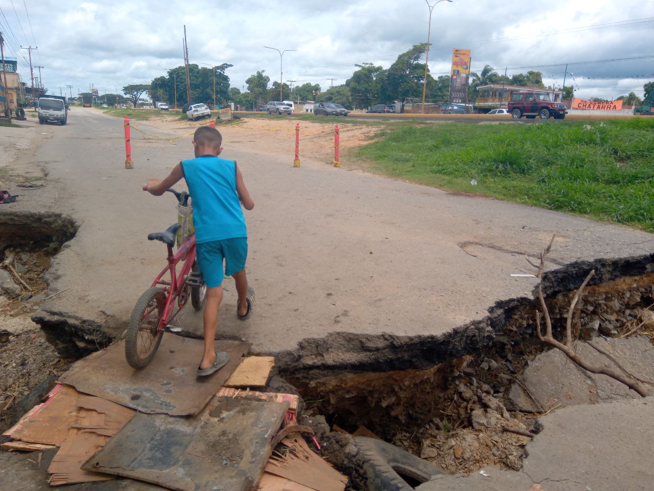 Gran hueco amenaza con tragarse la vía de servicio San Luis de Valencia