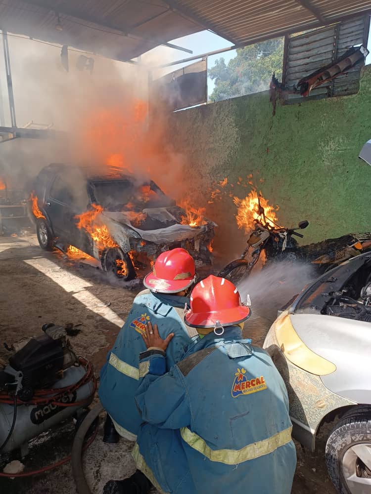 Incendio de taller mecánico deja tres lesionados en Güigüe (Fotos)