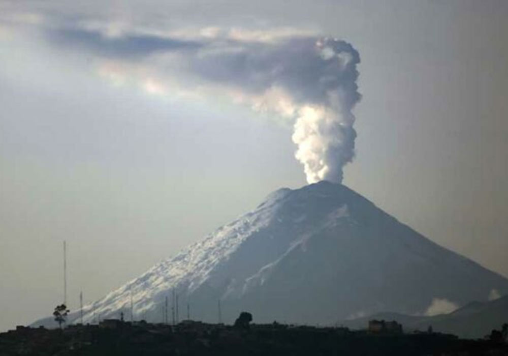 Volcán Cotopaxi emana columna de 900 metros de vapor y poca ceniza