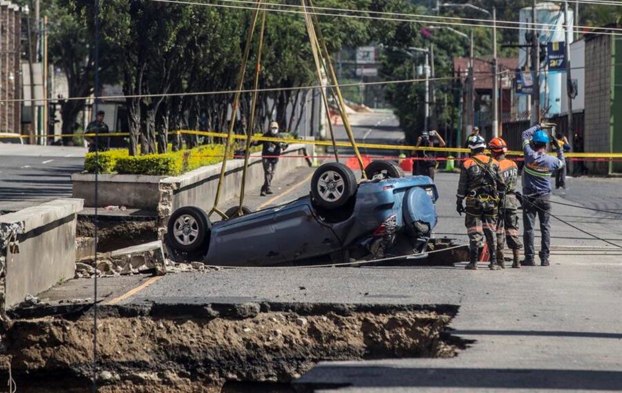 Dos desaparecidos y tres heridos tras hundimiento de calle en Guatemala