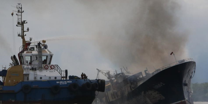 Se hundió buque venezolano incendiado en Colombia y derrama combustible