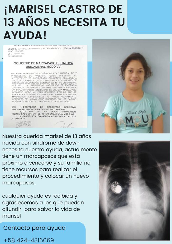 solicita tu ayuda para adquirir urgentemente un marcapasos. (Lea también: Carabobo pasa invicto a cuartos de finales en Campeonato Nacional Pre-Juvenil de Voleibol Femenino)