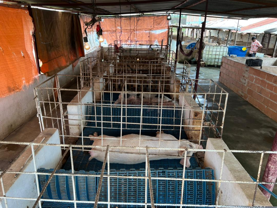 Continuando con el recorrido en áreas productivas dentro del Centro Penitenciario de Tocuyito, nos detuvimos donde tienen un galpón que funciona como criadero de cochinos.
