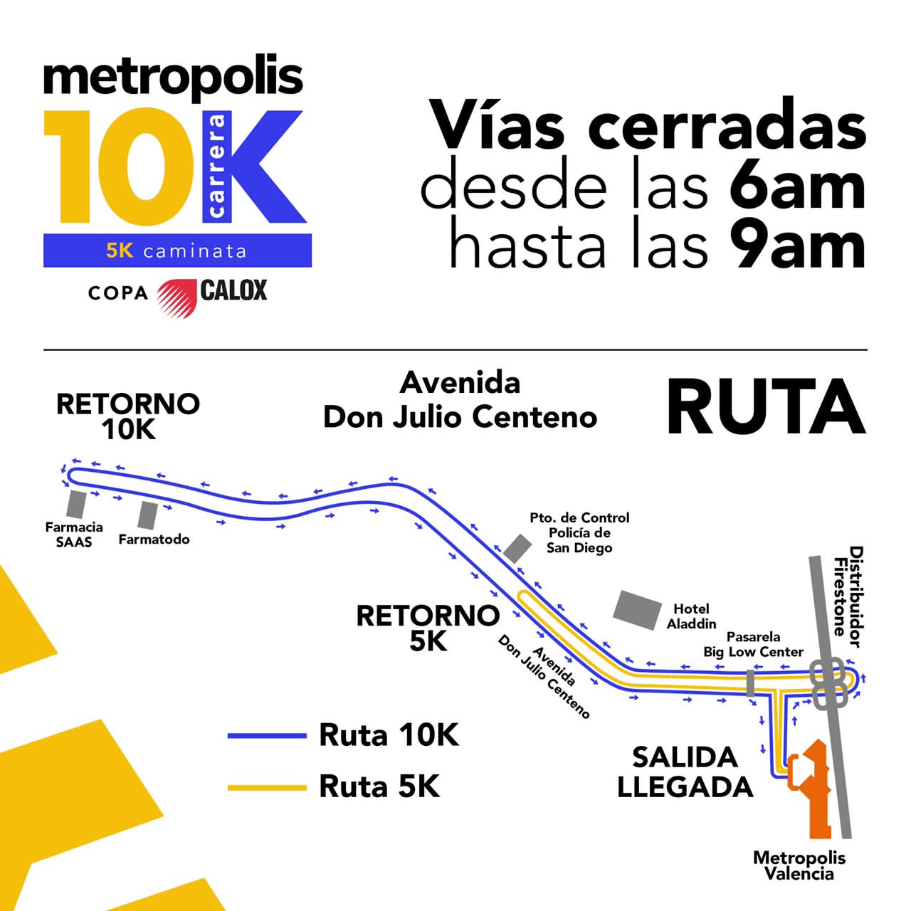 .- Este domingo 25 de septiembre estará cerrada la avenida Don Julio Centeno desde las 6:00 hasta las 8:30 de la mañana, por la realización de la primera edición de la Carrera Metropolis 10K.