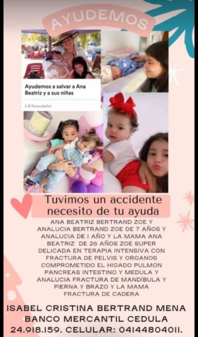 Servicio Público: Ayudemos a salvar a Ana Beatriz y sus hijas tras accidente vial