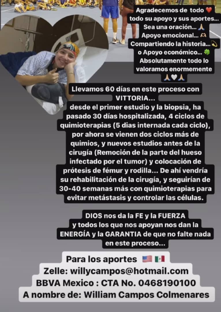 Con cada grano de arena que se pueda aportar Vittoria estará más cerca de continuar con su ciclo de quimioterapias, así como, con la serie de estudios médicos que requiere para luego someterse a una cirugía de remoción de la parte de hueso infectada por presencia de tumor.
