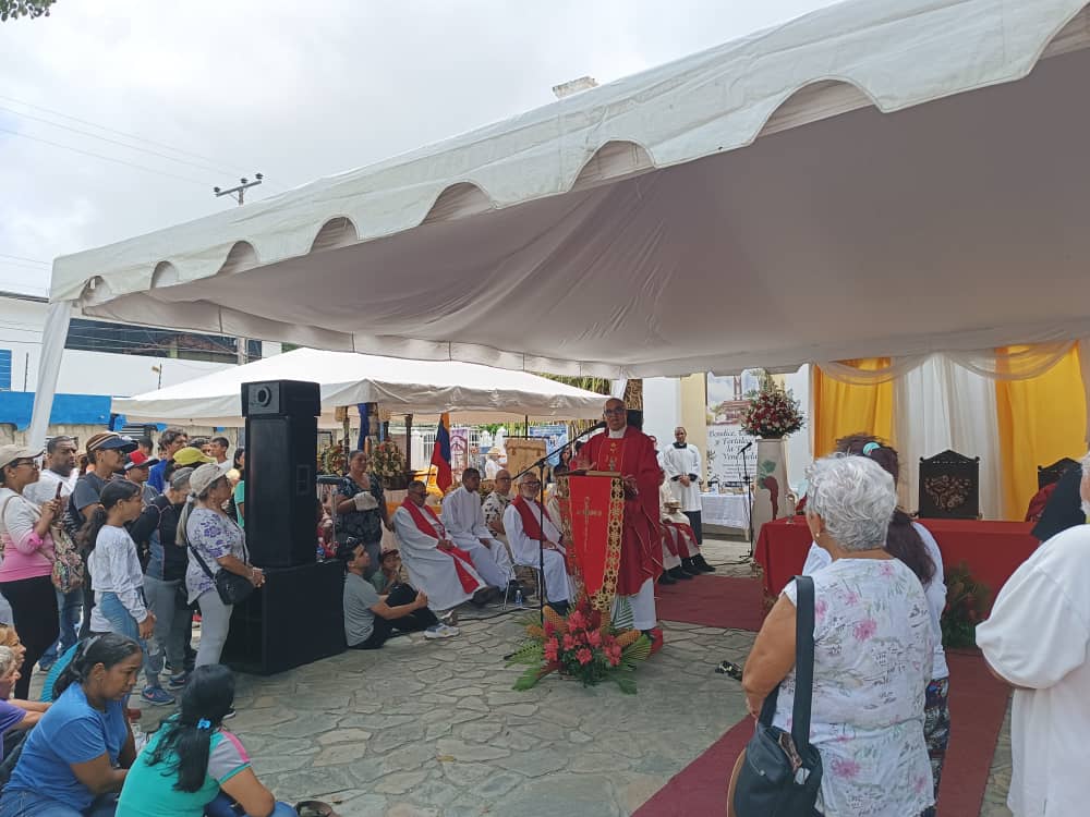 Durante la homilía, monseñor pidió a Cristo por los enfermos, por la salud de las personas de la tercera edad, por la paz y por cualquier dolencia, “porque él (Jesús) ha quedado aquí para que lo busquemos”. Al culminar la eucaristía, entre tambores, cantos, banderas y mucha alegría, se llevó a cabo la procesión la imagen de Cristo, San Juan y San Pedro por el pueblo, quienes al llegar Al Calvario, rindieron honores al Santo de la Salud.