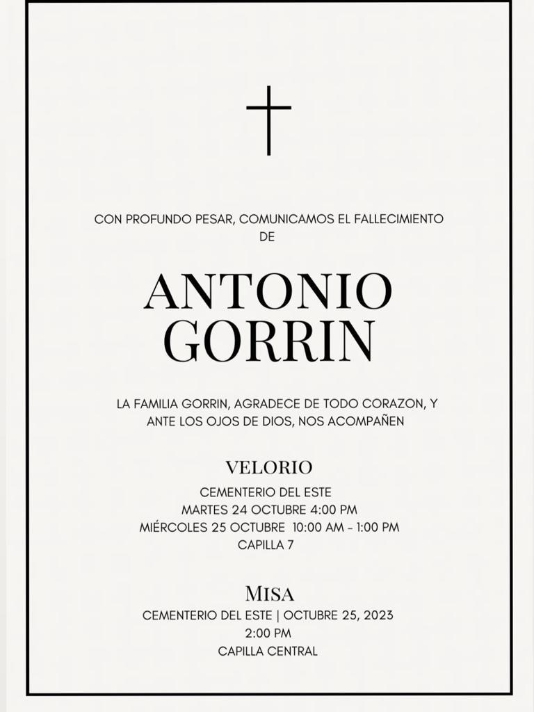 Notitarde lamenta el sensible fallecimiento del señor Antonio Gorrín