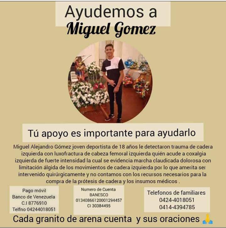 Servicio público: Miguel Gómez requiere nuestra ayuda