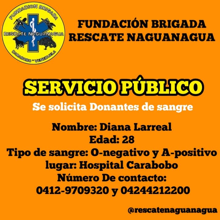 Servicio Público: Se necesitan donantes de sangre para Diana Larreal
