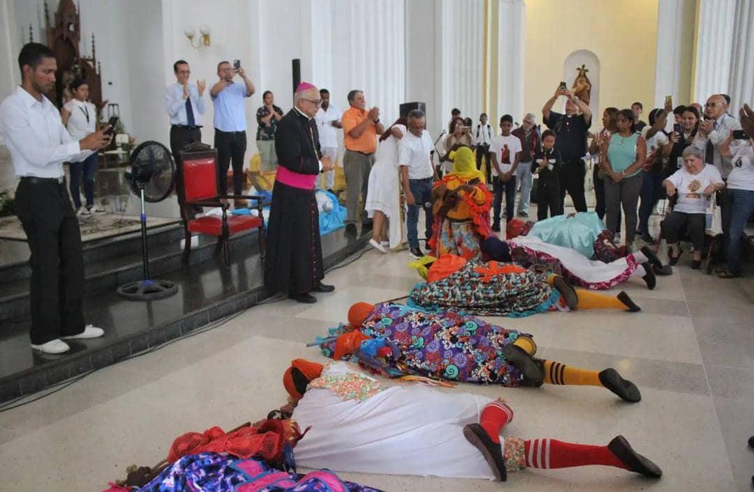 Durante la ceremonia, los Diablos Danzantes de San Millán y San Juan y San Pedro de Borburata, realizaron canticos y bailes a monseñor, además de pedir su bendición.