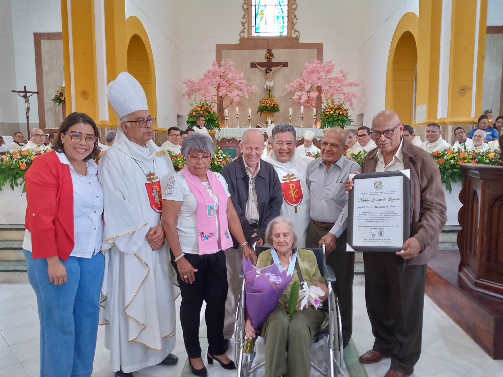 Al final de la celebración religiosa, autoridades entregaron la Orden Nuestra Señora de Begoña a la señora Isabel Martínez de Sequera por “su inquebrantable convicción en masificar el afecto y la fidelidad a la patrona de los naguanagüenses”.