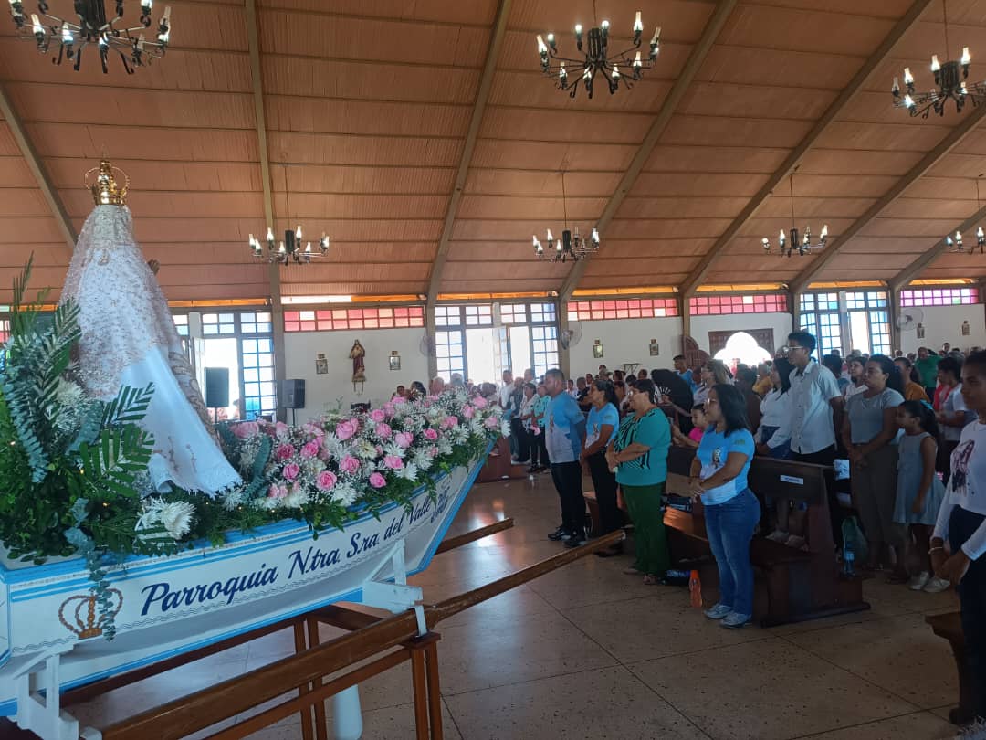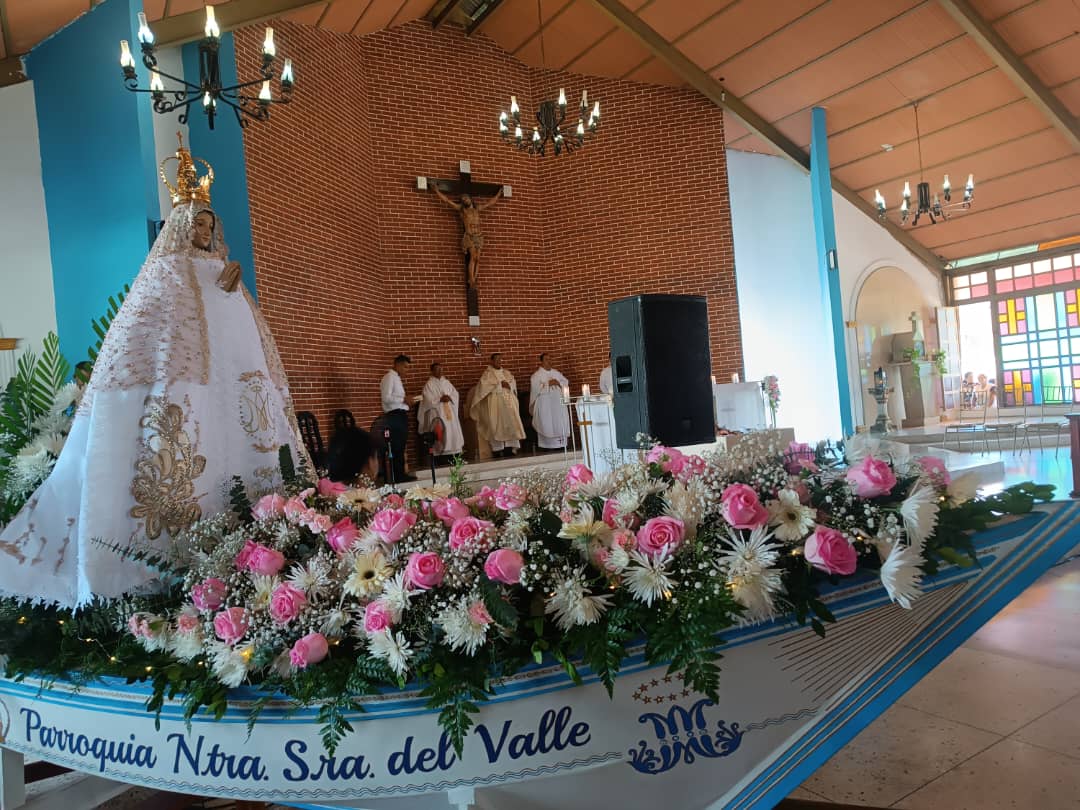 La celebración religiosa principal se llevó a cabo en la urbanización Cumboto II, parroquia Nuestra Señora Virgen del Valle, con una eucaristía ofrecida por el vicario de la Diócesis de Puerto Cabello, Cesar Palavicini, acompañado del párroco Cesar Barrio, quienes resaltaron la experiencia de María como discípula y guía para el encuentro con Cristo.
