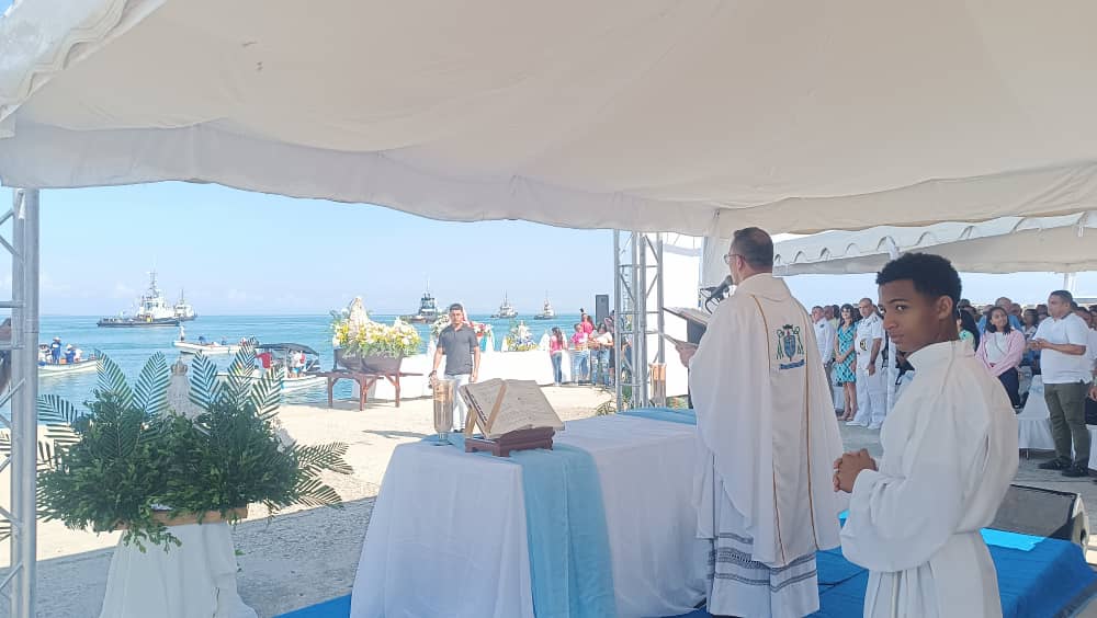 Por segundo año consecutivo, también fue celebrada una liturgia en el Paseo Malecón de Puerto Cabello. Frente al mar Caribe, representantes de instituciones municipales, sector pesquero y empresas relacionadas a las actividades marítimas, escucharon la palabra de Dios en la voz del presbítero Willis Azuaje.