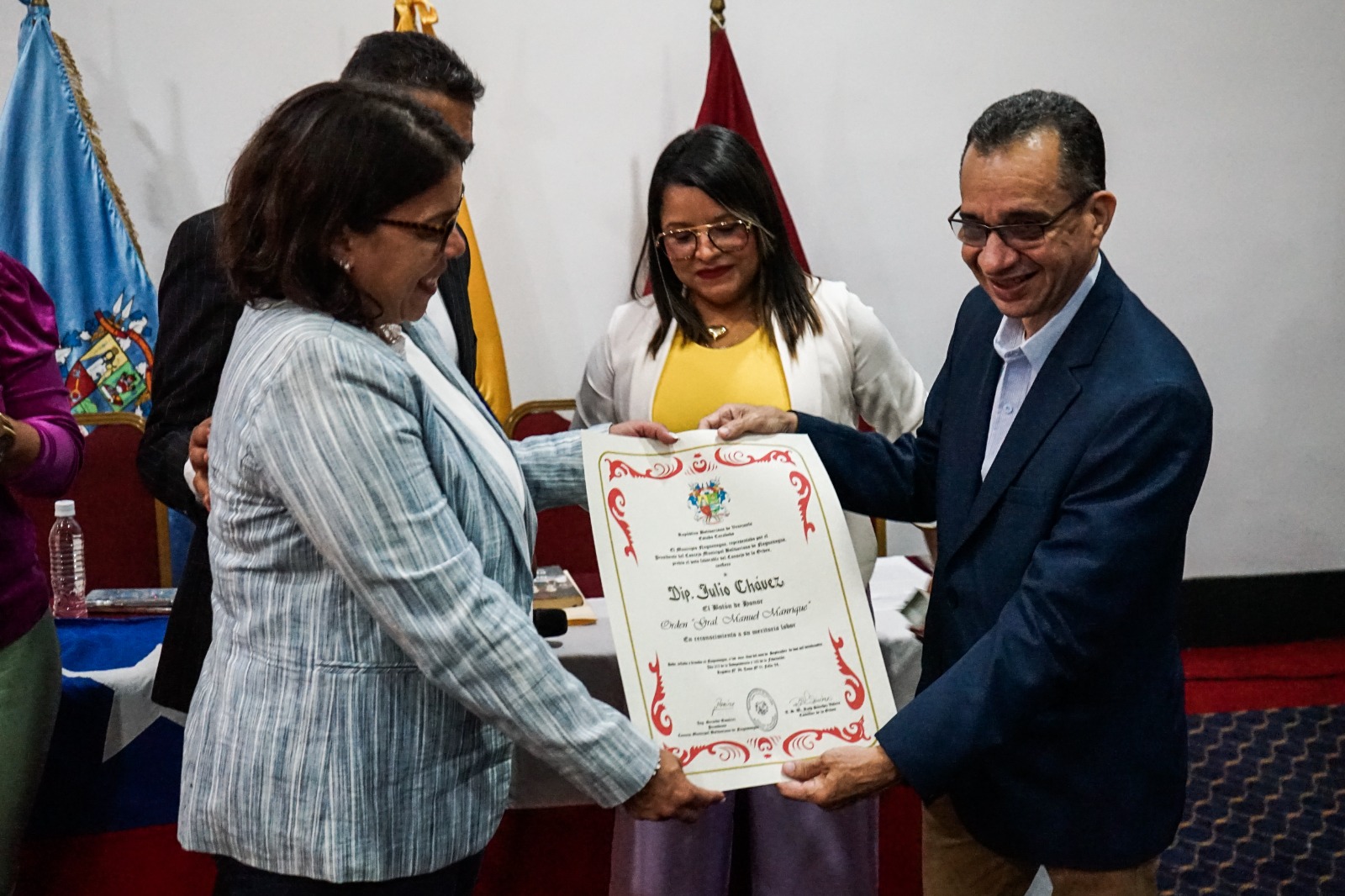 Durante la actividad, el diputado a la (AN), Julio Chávez, recibió la orden al mérito "Manuel Manrique", mientras que el profesor universitario chileno, Jaime Ortiz, y el ex ministro de Salud del Gobierno del presidente Hugo Chávez, Roger Capella, fueron condecorados con la Orden "Nelson Mandela".