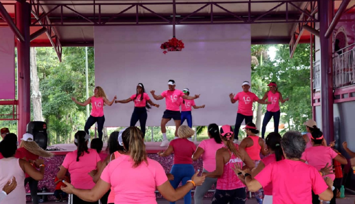 Carabobo.- Con el objetivo de crear conciencia sobre la prevención del cáncer de mama y en el marco de la celebración del "Mes Rosa", siguiendo instrucciones del gobernador Rafael Lacava y de la Primera Combatiente Nancy de Lacava, este domingo cientos de carabobeñas participaron en la Mega Bailoterapia Rosa, que se llevó a cabo en los espacios de "Mundo Barbie" del Parque Temático "Draculandia".