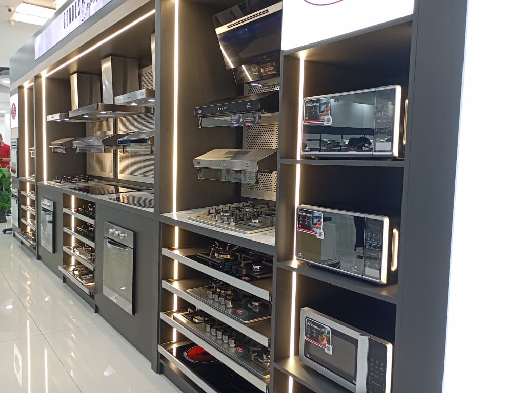 La nueva zona exhibe innovaciones tecnológicas, como cocinas empotrables de alta comodidad que se adaptan a cualquier espacio, campanas de encendido automático, aires acondicionados etc.