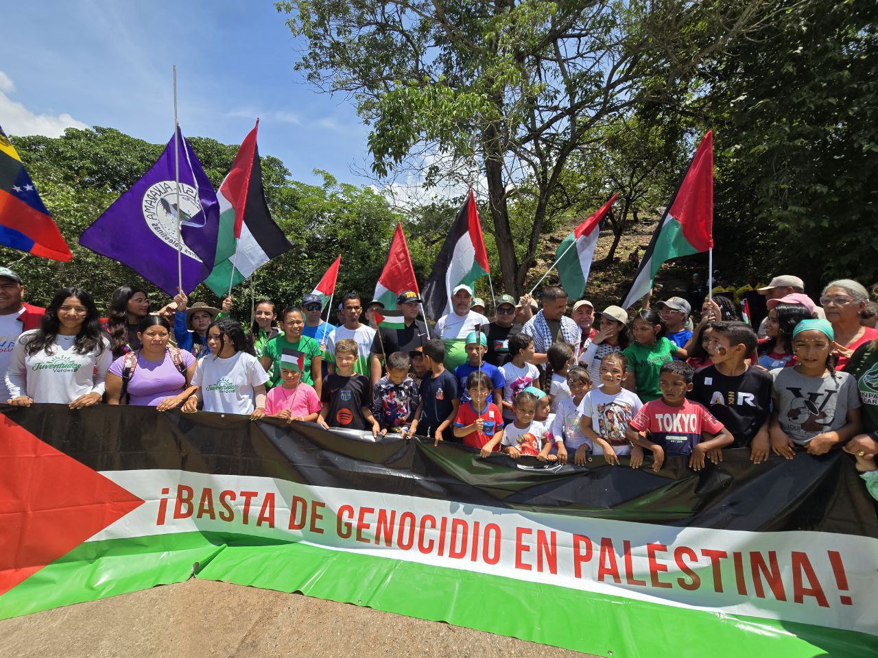 “Estamos haciendo un acto de solidaridad con el pueblo palestino, donde rechazamos el genocidio y ecocidio que día a día vive esta histórica nación; es por eso que desde Venezuela les expresamos nuestro respaldo a sus habitantes que resisten cada agresión con una firmeza implacable”, expresó.