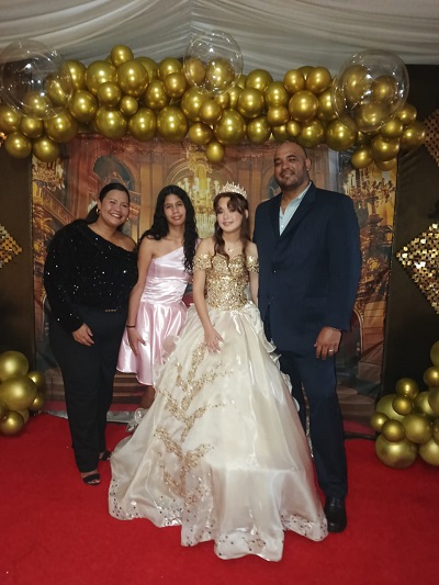 Desde las 8 de la noche del pasado viernes 26 de septiembre hasta las 4 de la mañana del sábado, alrededor de 100 familiares y amigos se reunieron para festejar este importante hito en la vida de la adolescente.