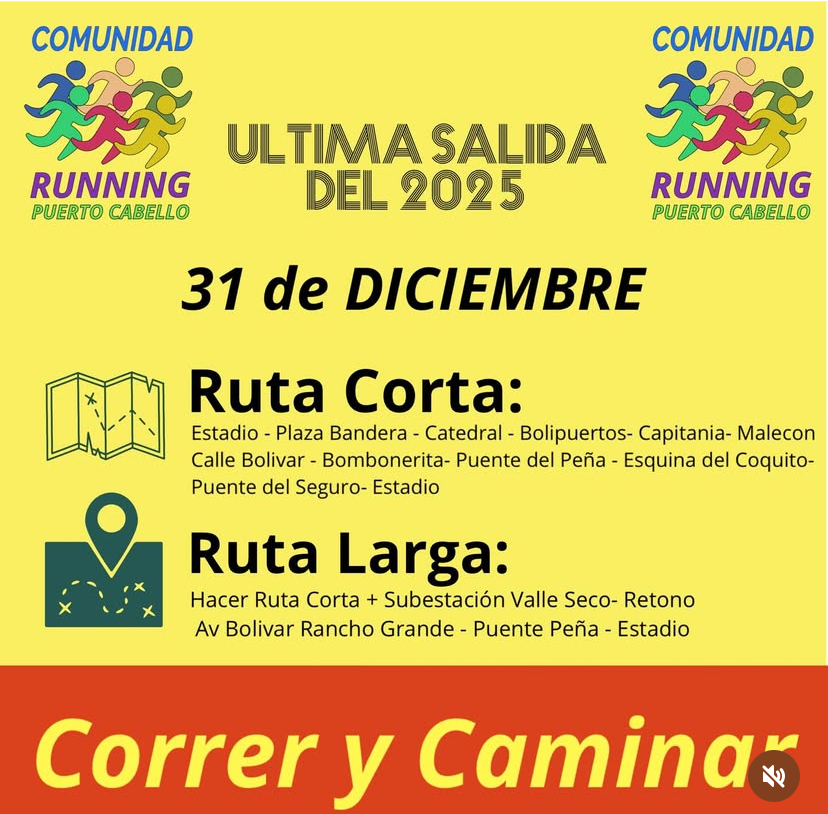 Deportes.- La Comunidad Running Puerto Cabello invita a todos los ciudadanos a participar en la "Última Salida del 2025", un evento deportivo que busca cerrar el año con energía y salud el próximo miércoles 31 de diciembre.