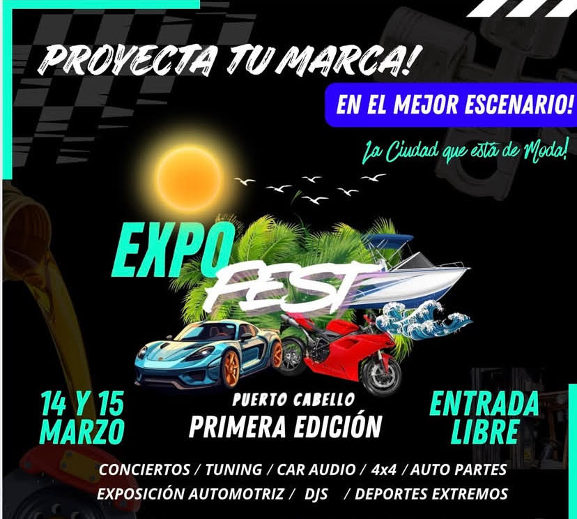 Carabobo.- El mundo automotriz y el entretenimiento se fusionan en la costa carabobeña, bajo el lema "La Ciudad que está de Moda", se ha anunciado oficialmente la primera edición de la Expo Fest, un evento diseñado para reunir a las familias venezolanas en torno a la pasión por los motores y la música.