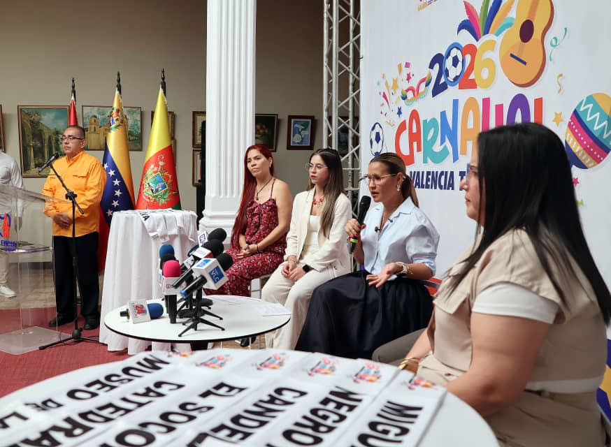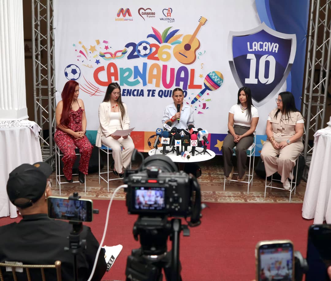 En rueda de prensa ofrecida este lunes en los espacios del Centro de Artes Vivas “Alexis Mujica” CAVAM, en el Centro Histórico de la ciudad, Dina Castillo, alcaldesa de Valencia, acompañada por Alba Adrianza, Autoridad Única de Turismo en el estado Carabobo; Xiomara Luna Autoridad Única de Educación en ña entidad; Natalia Pacheco, presidenta de Fundatur, Nathaly Bustamante, Secretaria para el Desarrollo de la Cultura y el Arte del Ejecutivo Estadal; María Alejandra González, presidenta de Fundacultura y el GD Bilfred Bastidas, Director General de la Policía Municipal de Valencia, además de integrantes del Comité Organizador, ofreció detalles sobre la programación pensada para toda la familia valenciana para estas carnestolendas.