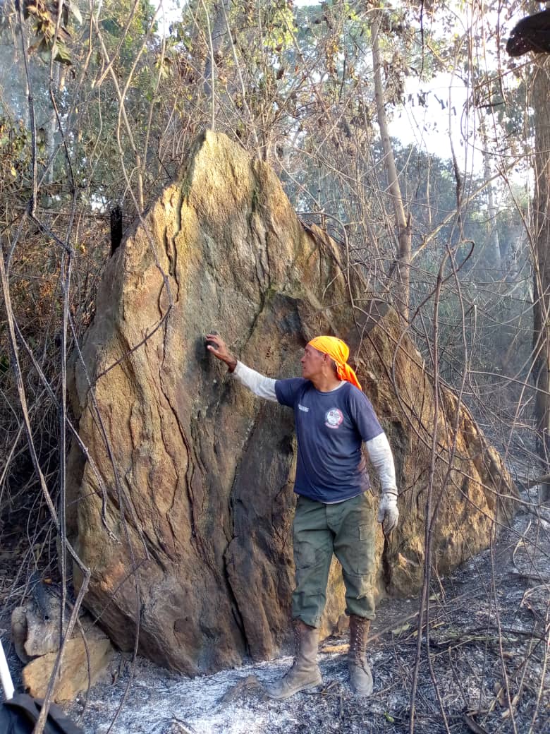 Añadió que la misma es de forma triangular o tipo pirámide, un hallazgo que llamó la atención de los ecologistas, quienes en días pasados acudieron a ayudar en las labores de combate del incendio que se presentó en el lugar, por lo que regresaron para levantar un informe de lo encontrado.