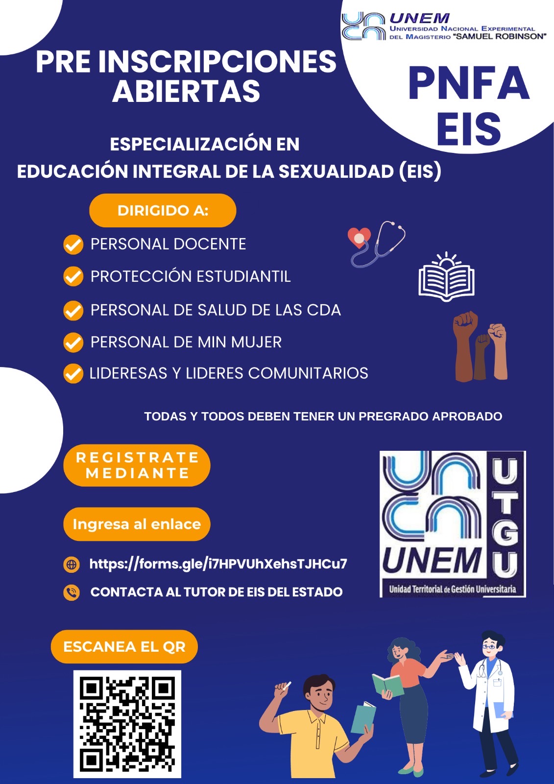 Carabobo.- Para abordar las problemáticas sociales derivadas del manejo inadecuado de la información de la salud reproductiva, se ha anunciado la apertura de una nueva cohorte de la Especialización en Sexualidad en la Universidad Nacional Experimental del Magisterio "Samuel Robinson" (UNEM) del municipio Puerto Cabello.