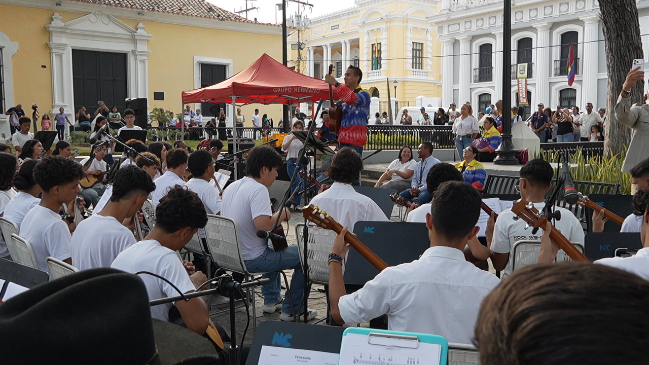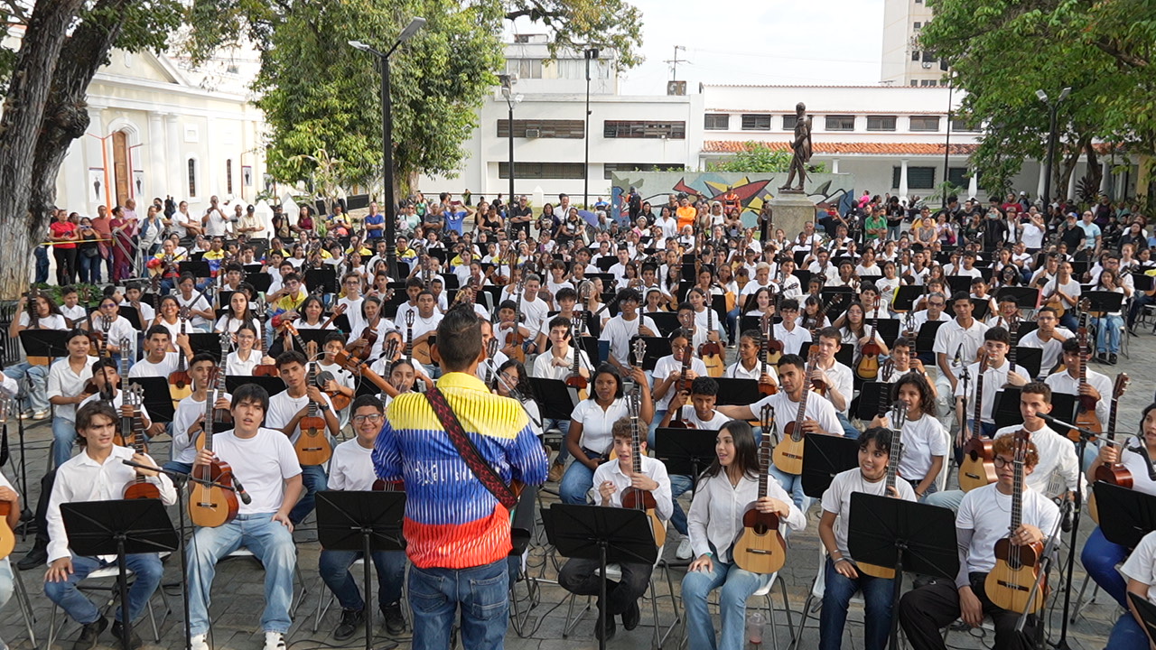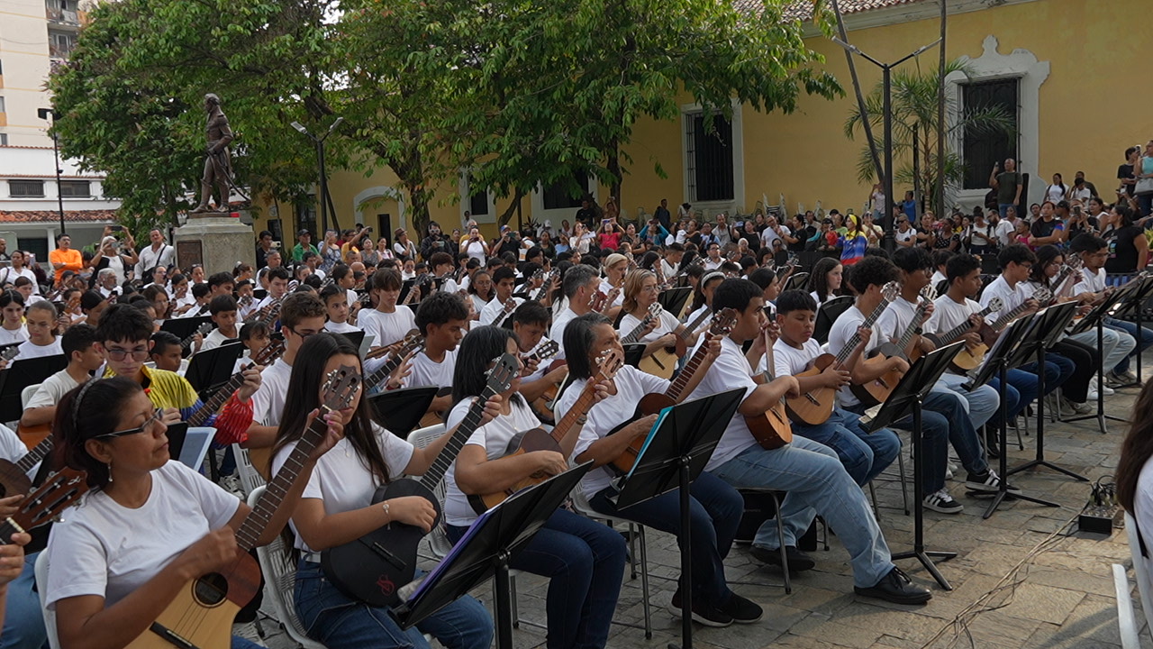 Carabobo.- En un ambiente cargado de emoción, más de 400 artistas participaron en un concierto del Sistema Nacional de Orquestas y Coros Juveniles, en el marco de la Semana Nacional del Cuatro en la plaza Sucre del centro de Valencia, actividad organizada por el Ejecutivo nacional, en articulación con la Gobernación del estado Carabobo, a través de la Secretaría para el Desarrollo de la Cultura y el Arte, y la Alcaldía de Valencia.