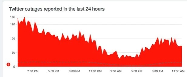 En el gráfico obtenido en la página web citada se puede apreciar un aumento en las notificaciones de parte de los usuarios con diversos problemas en Twitter. Un 67 por ciento de los informes detallan problema en la página web de la red social, mientras que un 23 por ciento de los usuarios en aplicación tiene reportes y finalmente un 10 por ciento reportan errores en el feed de Twitter para ver publicaciones.