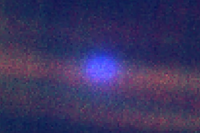 Combinando varias longitudes de onda de luz ultravioleta, la imagen muestra la coma de gas (azul y verde) y polvo (rojo) que rodea el núcleo del cometa. Europa Clipper observó 3I/ATLAS durante unas siete horas, desde una distancia de alrededor de 164 millones de kilómetros.