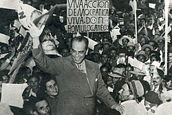 Marcos Pérez Jiménez, militar de carrera, comandó un grupo de uniformados que derrocó al gobierno de Isaías Medina en 1945. Esa fue su primera incursión en la política venezolana. Tras el citado golpe, se celebraron elecciones libres en las que resultó ganador Rómulo Gallegos. También él fue luego depuesto.