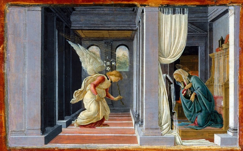 La oración comienza con un pasaje del episodio conocido como la Anunciación, en el que el ángel Gabriel saluda a la joven: "Dios te salve, María, llena eres de gracia, el Señor es contigo".