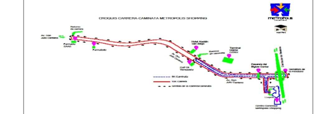 Jeanne Borges, directora de Mercadeo del Grupo Mantex, informó a los aficionados del running y familia que deseen participar, que la Carrera 10K saldrá desde el C.C. Metrópolis, recorrerá toda la avenida Don Julio Centeno, pasará por el Punto de Control de la policía de San Diego, retornará a la altura de Farmacia SAAS, hasta el punto de llegada que será el mismo centro comercial con un inicio previsto a las 6:30 am del día domingo.