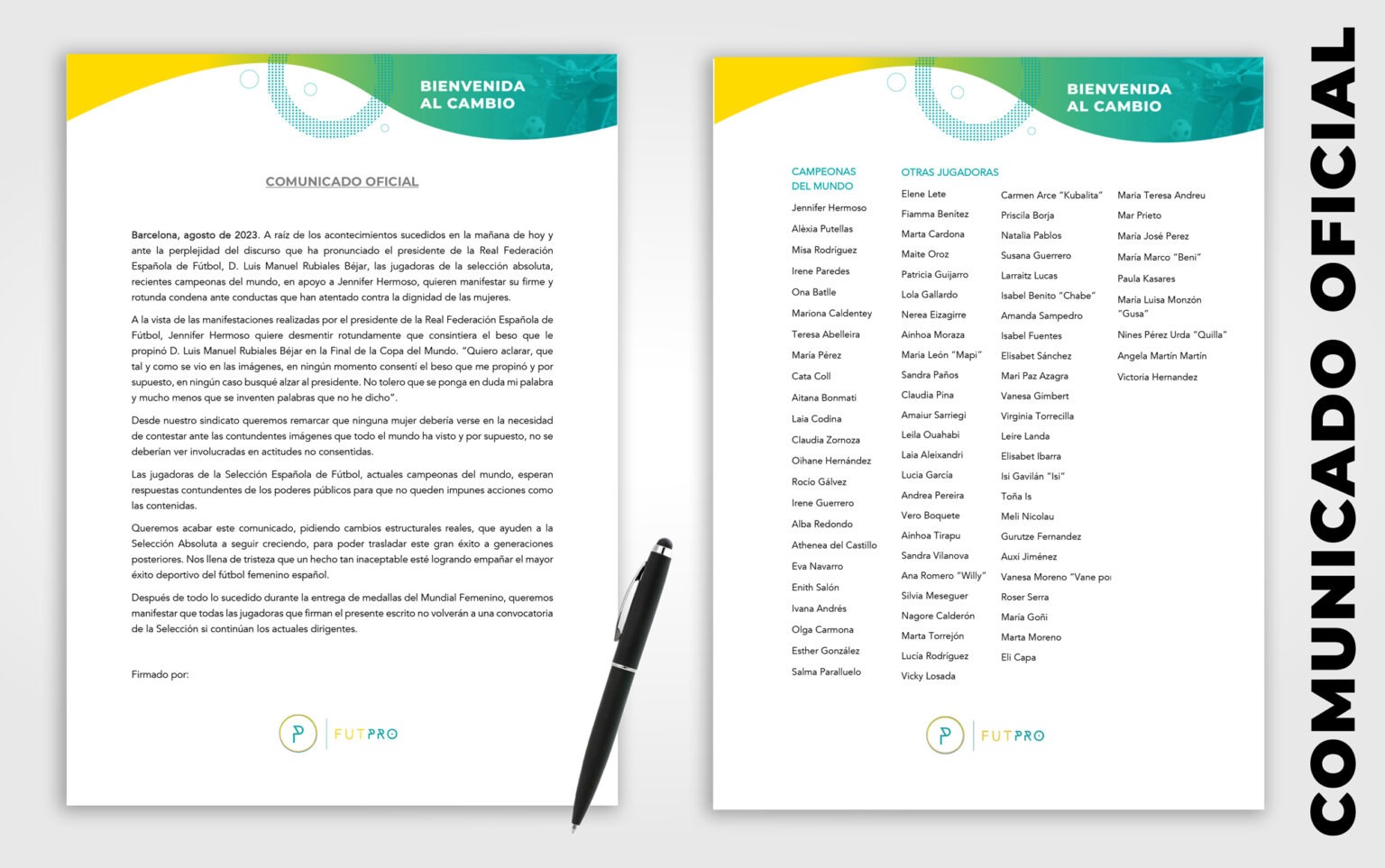 La Futpro, formada por las futbolistas que juegan en España, publicó un comunicado condenando el beso que Rubiales dio a la jugadora Jennifer Hermoso. Además, dijeron que esperan “respuestas contundentes”, contra todo lo que sucedió ya que "no fue algo consensuado".