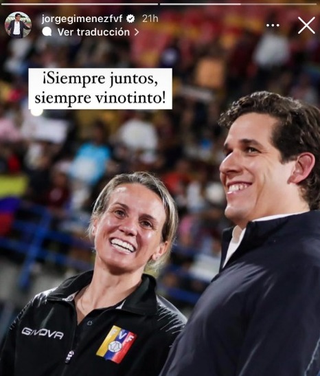 Giménez compartió una historia en la que aparece sonriendo junto a la seleccionadora nacional, y en la fotografía escribió "Siempre juntos, siempre Vinotinto".