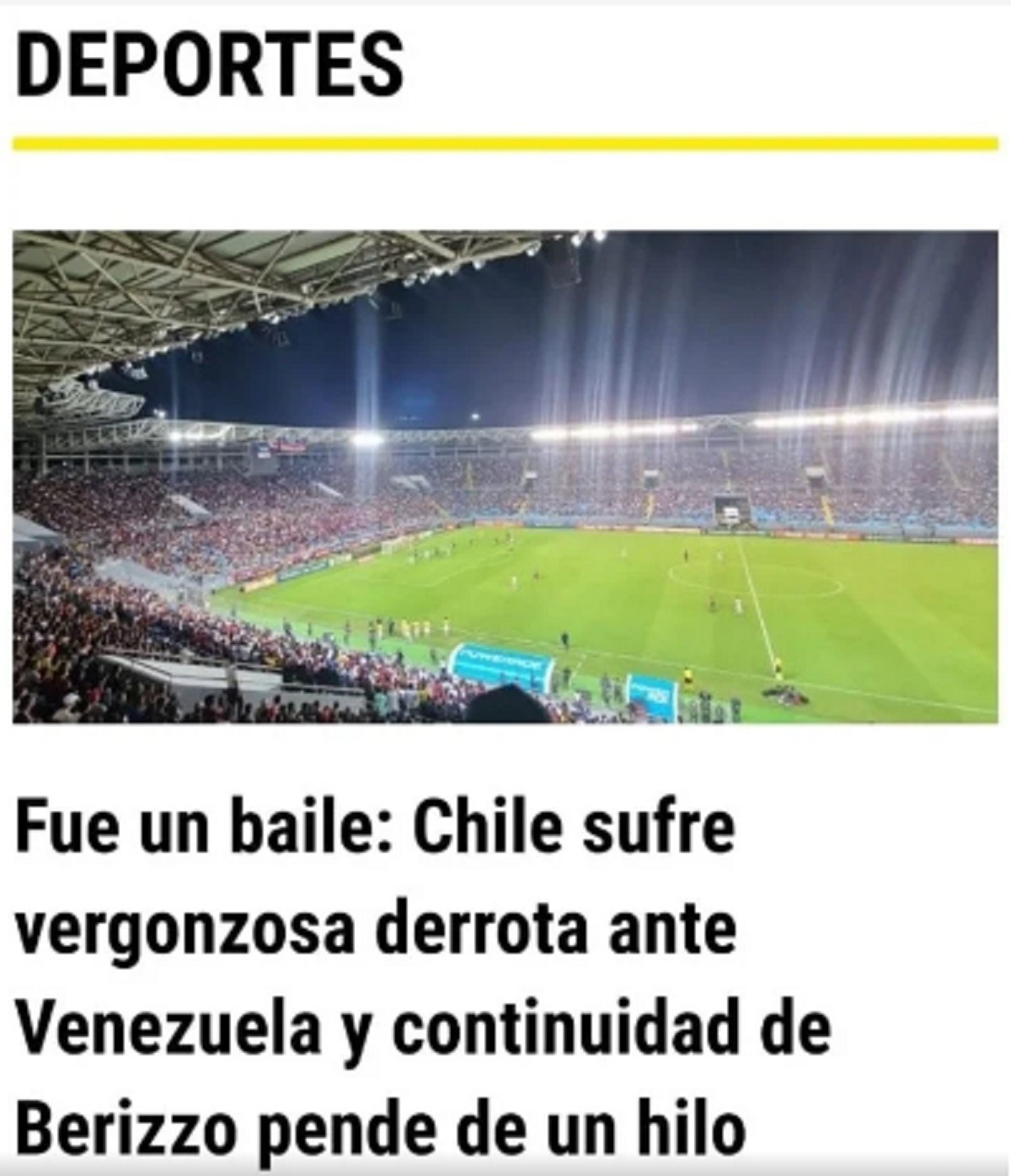 Por su parte, medios como As Chile tituló que "Venezuela pone de rodillas a Chile" y CNN Chile, lo nombró como "una aplastante derrota".