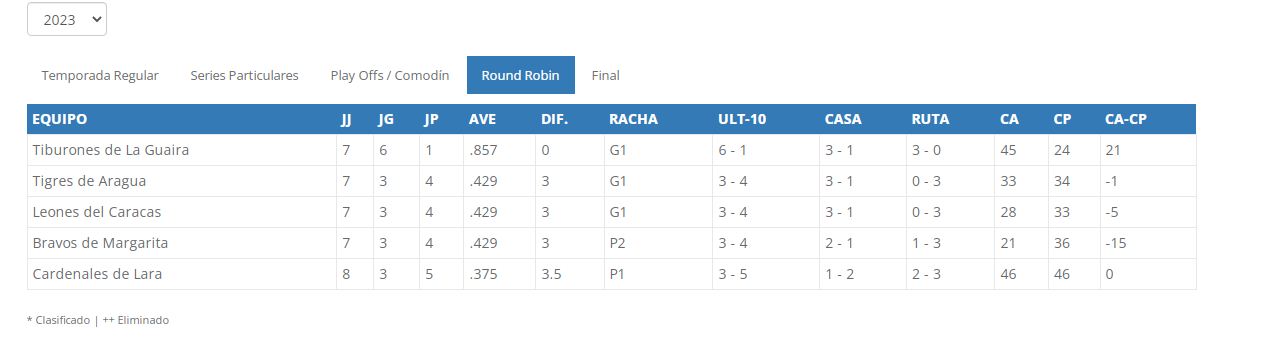 LVBP: Posiciones, resultados y juegos del Round Robin este 11-Ene