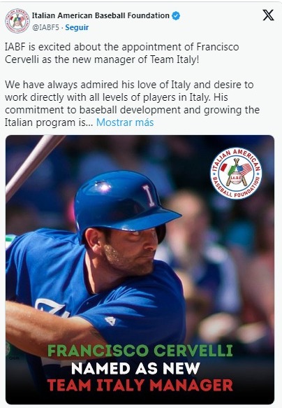 Deportes.- El italo-venezolano Francisco Cervelli fue oficializado este lunes como manager de la selección de Italia para el Clásico Mundial de Béisbol 2026.