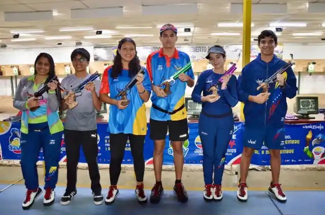 Por su parte el mirandino Aníbal Pérez ganó la medalla de oro en la prueba 10 metros rifle de aire hombres con 618,8 puntos; mientras que en la categoría juvenil de esta prueba el carabobeño Santiago Niño se llevó los máximos honores al totalizar 603,6 en las 6 series que se disputaban en la modalidad.