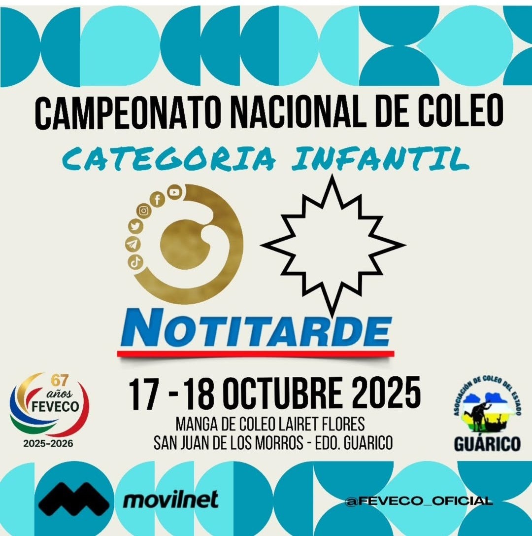 Deportes.- ¡Saludos lectores! La manga Layret Flores ubicada en San de los Morros capital del estado Guárico será escenario del campeonato nacional de coleo categoría infantil correspondiente a la temporada 2025-2026 y donde además se estará disputando la Copa Globovisión, Notitarde y Agropecuaria Capadoccia.