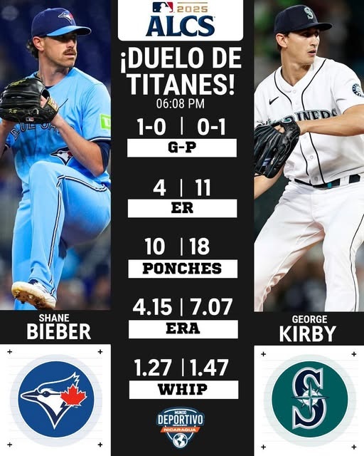 Para el séptimo juego este lunes 20 de octubre en Toronto para definir al campeón de la Liga Americana, los abridores serán George Kirby (Marineros) y Shane Bieber (Azulejos).