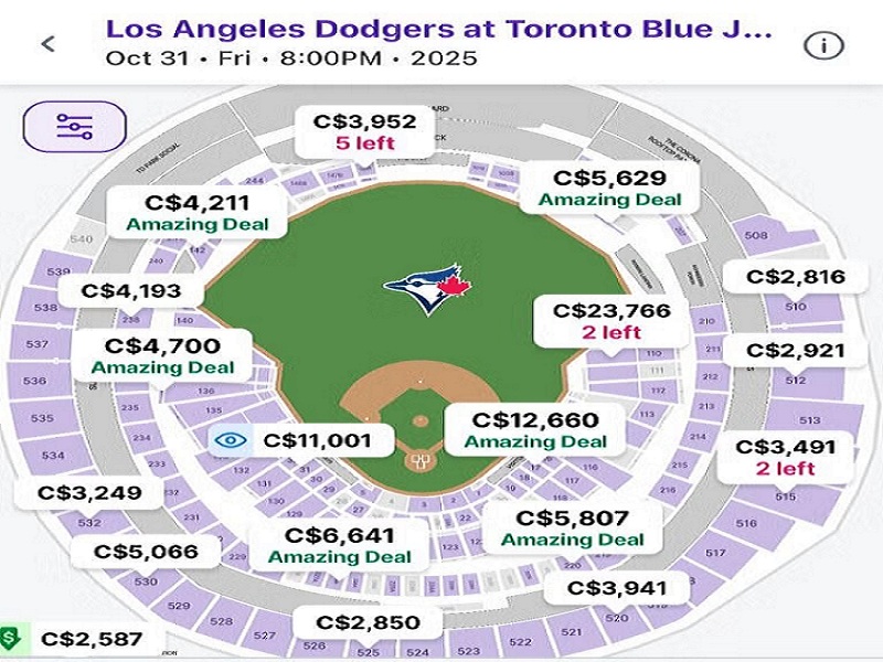 Deportes.- El Juego 6 de la Serie Mundial entre los Toronto Blue Jays y Los Angeles Dodgers se perfila como el evento deportivo más caro en la historia de Canadá.