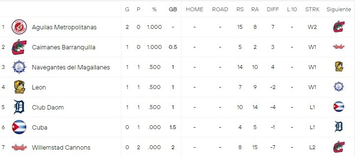 Hasta ahora, la tabla de posiciones en serie Las Américas queda así: