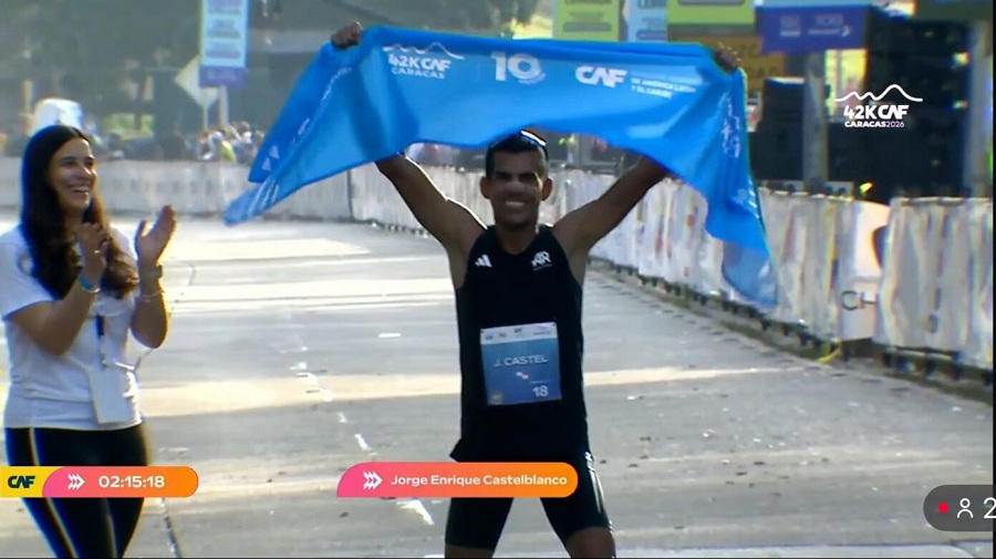 #Deportes | 🏃🥇Así fue la llegada del panameño Jorge Castelblanco en el #MaratónCAFCaracas2026, en su décima edición, quien batió el récord de los #42K con un registro de 2:15.17, desplazando a Justino Pedro Da Silva con 2:16:15