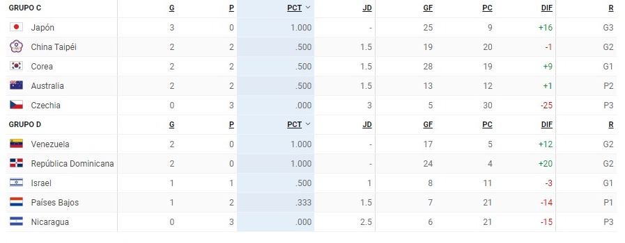 La pelea en el Grupo D está que arde. Actualmente, Venezuela y la República Dominicana dominan la tabla, ambos con un paso perfecto de 2 victorias sin derrotas.