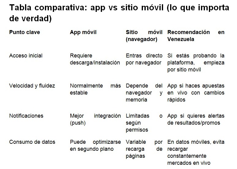 Apostar en móvil en Venezuela: App vs sitio móvil