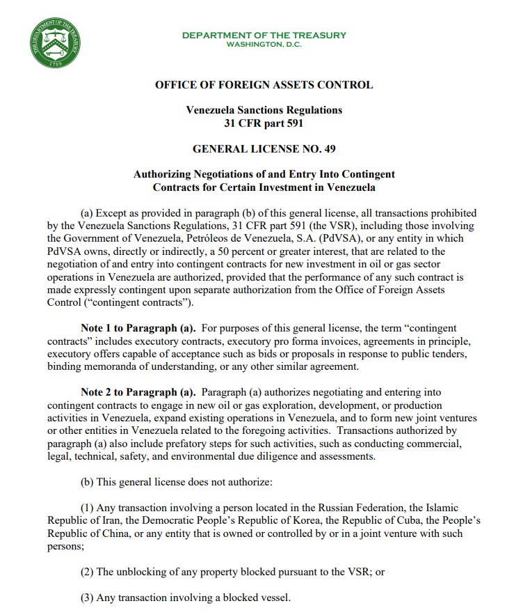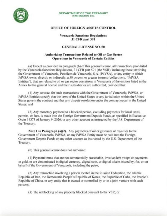 Cabe destacar que la Licencia General Nro. 50 permite todas las transacciones prohibidas anteriormente por el Reglamento de Sanciones a Venezuela (VSR) que involucren al Gobierno de Venezuela, a Petróleos de Venezuela, S.A. (PDVSA) o a sus entidades subsidiarias (con participación del 50 % o más), siempre que dichas operaciones estén vinculadas a las actividades petroleras o gasíferas de las entidades enumeradas en el anexo de la licencia.